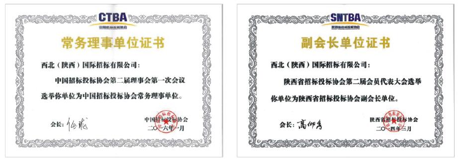 2005年9月,西北國際招標公司作為西北地區(qū)招標機構的企業(yè),在中國招標投標協(xié)會成立大會上被推選為西北地區(qū)招標機構唯一常務理事單位,受到社會各界的廣泛贊譽。