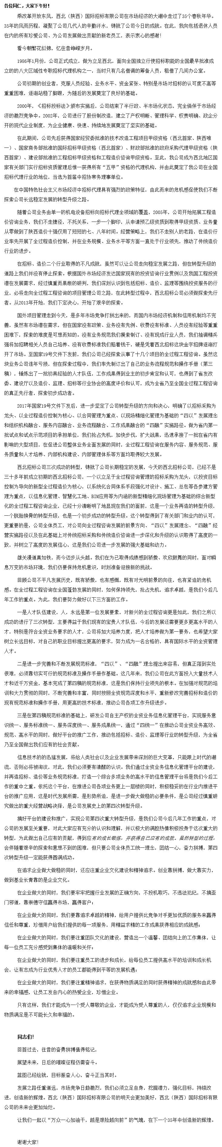 搶占先機(jī),追求卓越,打造一流水平的全過程工程咨詢企業(yè)——董事長戈乃西35周年慶典發(fā)言