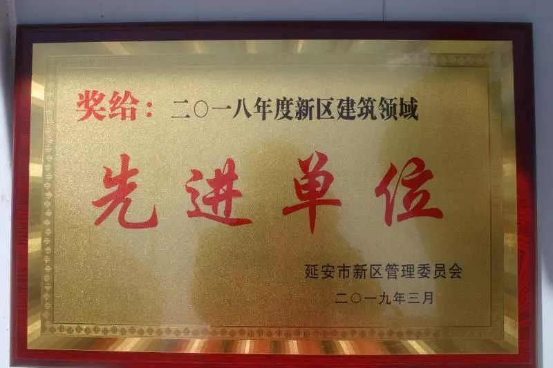 我公司榮獲2018年度延安新區(qū)建筑領(lǐng)域“先進單位”榮譽稱號