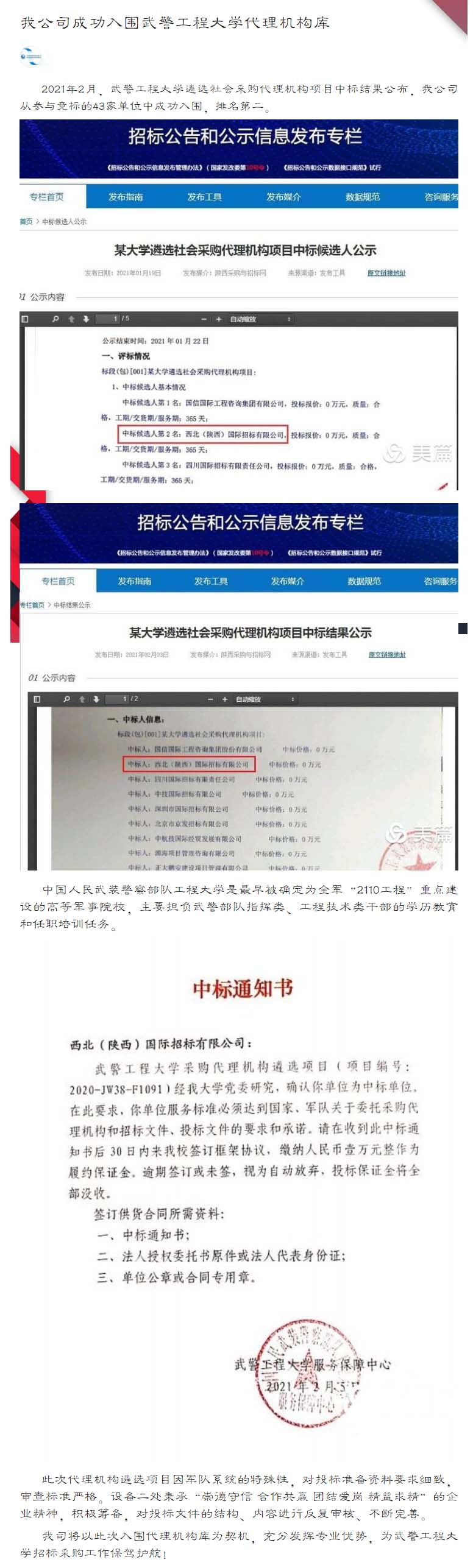 我公司成功入圍武警工程大學(xué)代理機(jī)構(gòu)庫(kù)