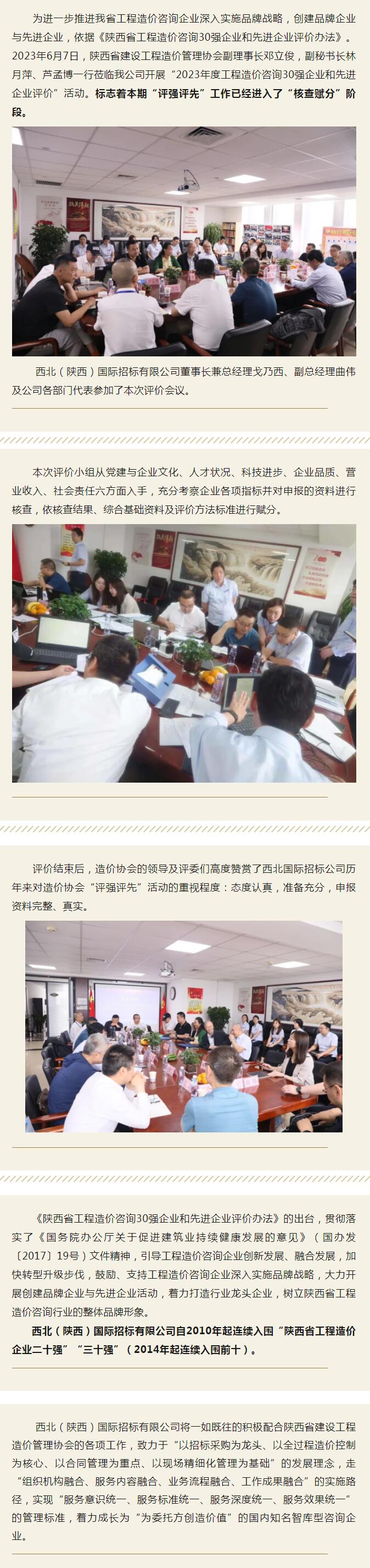 陜西省建設(shè)工程造價(jià)管理協(xié)會(huì)蒞臨我公司開展“2023年度工程造價(jià)咨詢30強(qiáng)企業(yè)和先進(jìn)企業(yè)評(píng)價(jià)”活動(dòng)