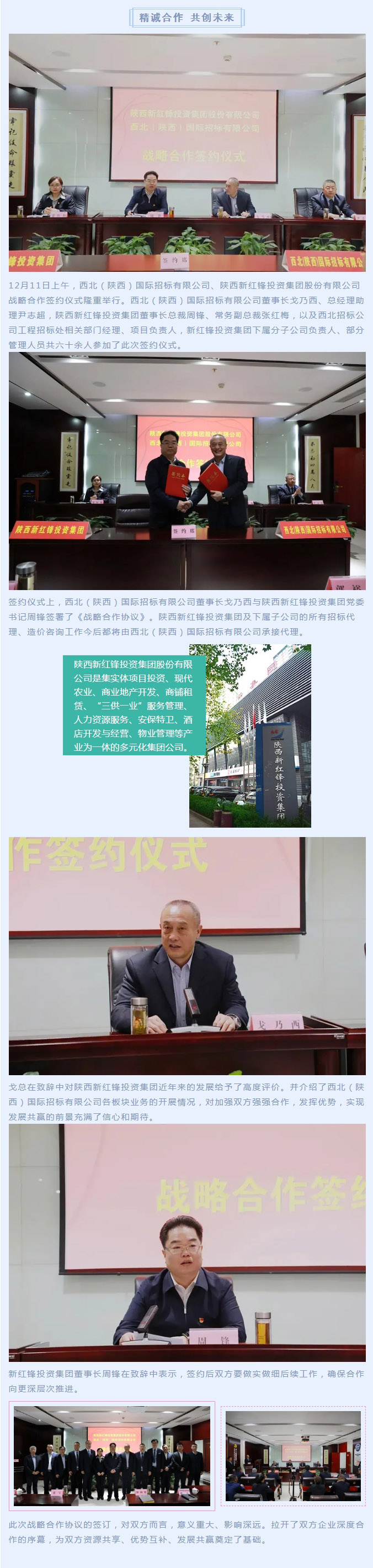 精誠(chéng)合作 共創(chuàng)未來(lái)——西北(陜西)國(guó)際招標(biāo)有限公司與陜西新紅鋒投資集團(tuán)股份有限公司戰(zhàn)略合作簽約儀式隆重舉行
