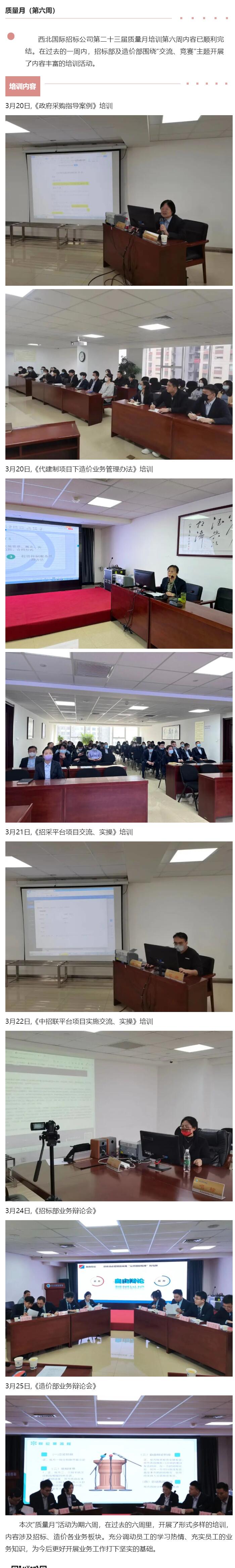 西北國際招標公司第二十三屆“”質量月”培訓活動報道(第六周)