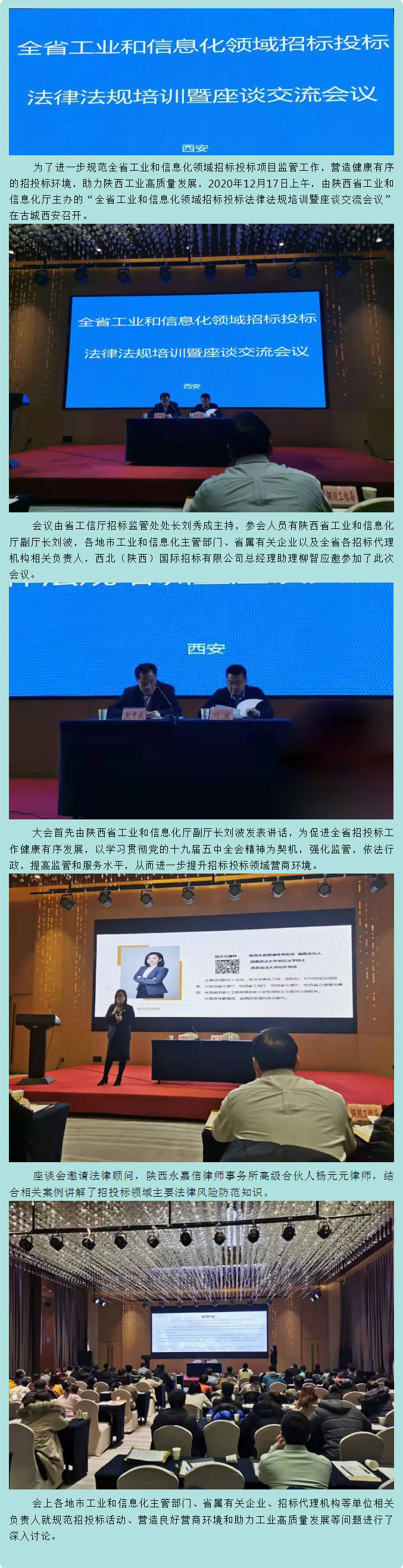 我公司總經(jīng)理助理柳智受邀參加陜西省工業(yè)和信息化領(lǐng)域招標(biāo)投標(biāo)法律法規(guī)培訓(xùn)暨座談交流會(huì)議