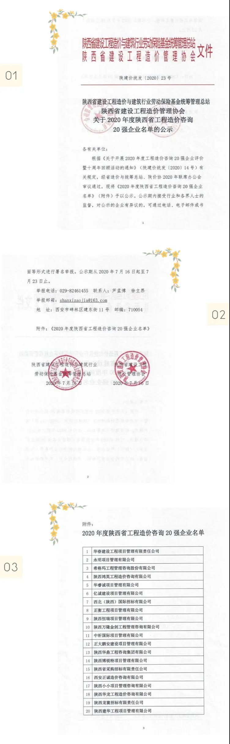 2020年7月17日,陜西省建設(shè)工程造價(jià)管理協(xié)會(huì)(簡(jiǎn)稱陜價(jià)協(xié))發(fā)布“關(guān)于2020年度陜西省工程造價(jià)咨詢20強(qiáng)企業(yè)名單的公示”,西北(陜西)國(guó)際招標(biāo)有限公司再次入圍,榮獲“第七名”。