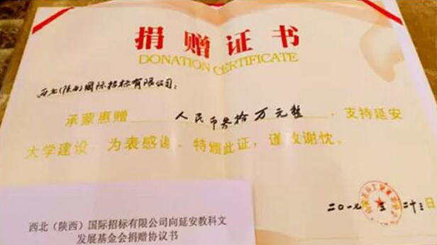 同時,我們牢記企業(yè)的社會責任,積極支持革命圣地的教育與科技發(fā)展,公司決定向延安教科文發(fā)展基金會捐款30萬元。