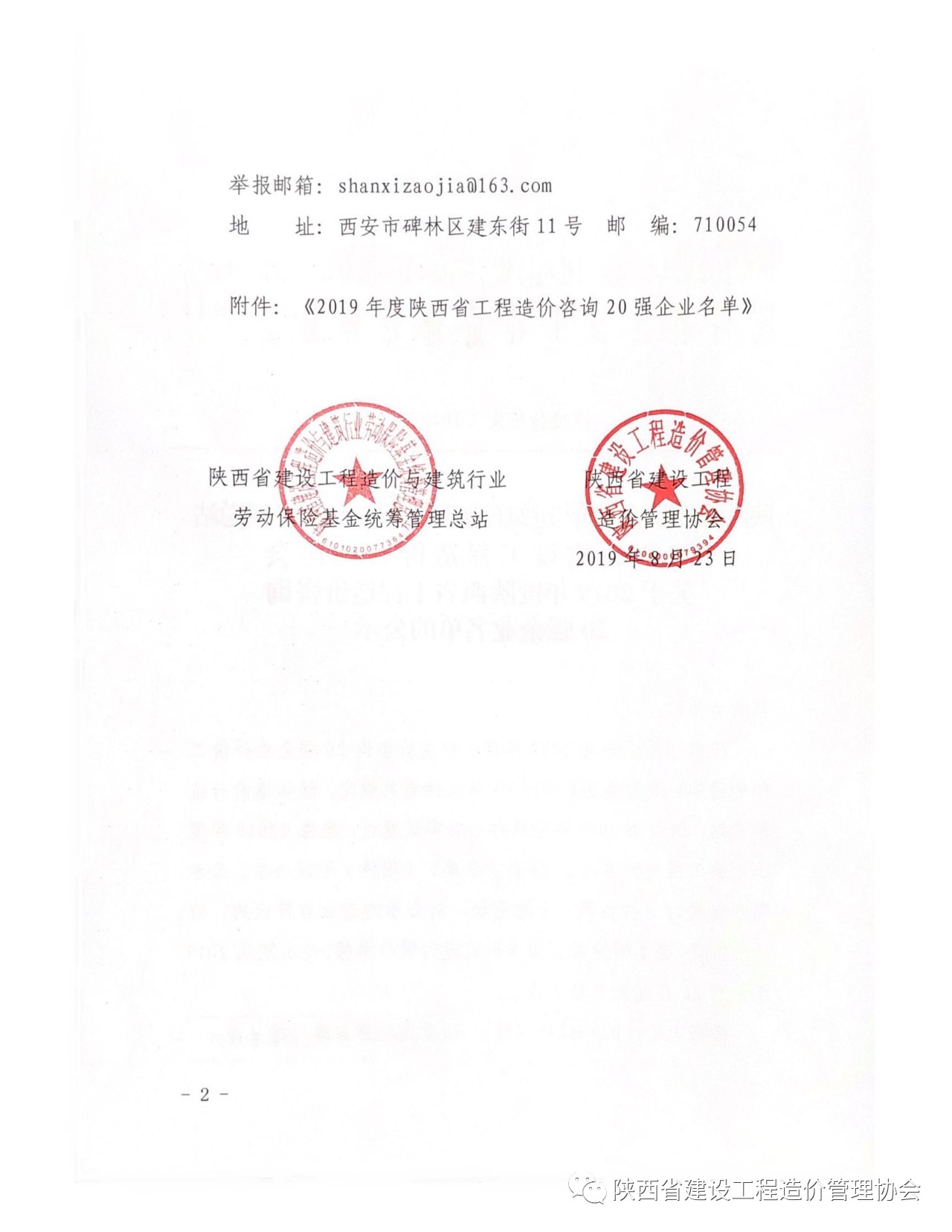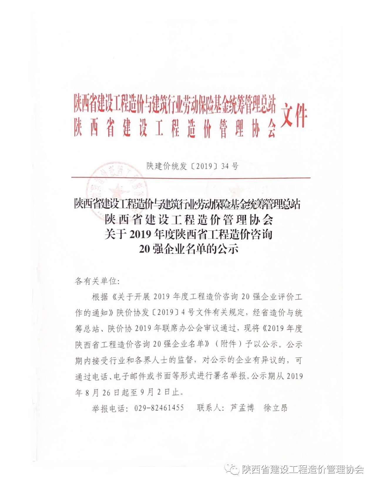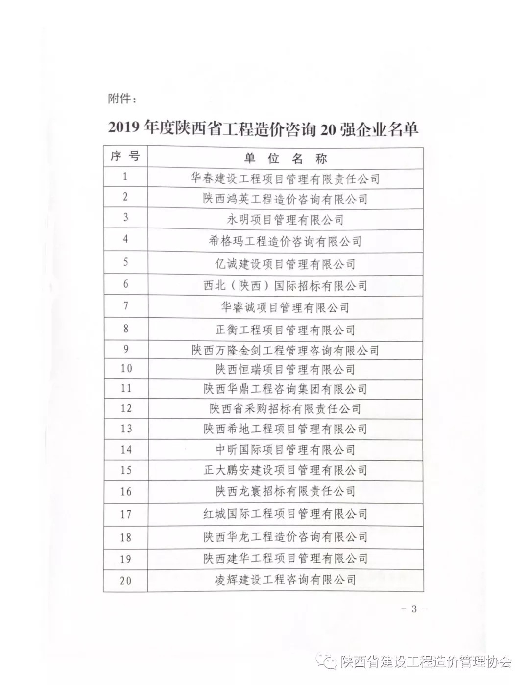 2019年8月26日,陜西省建設(shè)工程造價(jià)管理協(xié)會(huì)(簡稱陜價(jià)協(xié))發(fā)布“關(guān)于2019年度陜西省工程造價(jià)咨詢20強(qiáng)企業(yè)名單”公示,西北(陜西)國際招標(biāo)有限公司再次入圍,榮獲“第六名”。