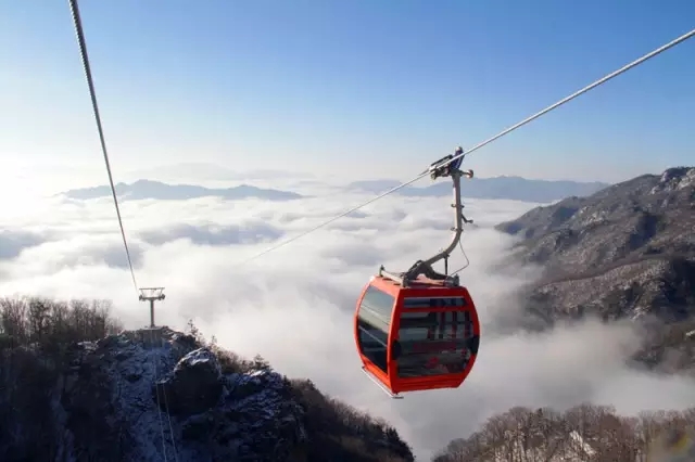 乘坐著景區(qū)索道纜車,全長(zhǎng)2168米,高差916米,10分鐘便從清幽秀麗的峽谷,登上了雄渾壯觀的梁頂。
