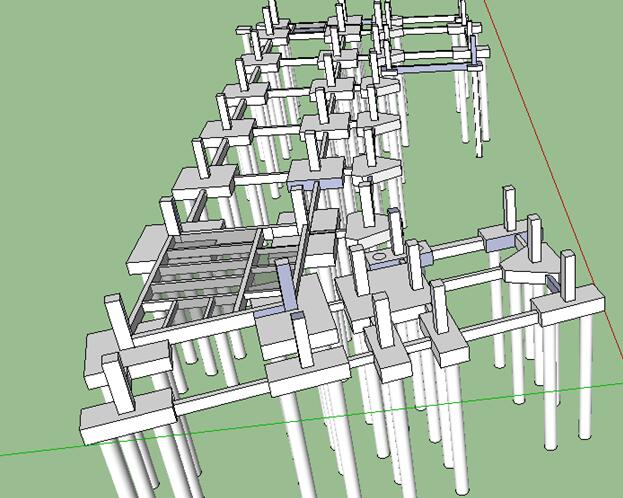 3、項目部成立BIM工作組對施工現(xiàn)場每一樓棟基礎(chǔ)BIM建模。因本項目依山而建,各棟教學(xué)樓標(biāo)高不一,且均有走廊連接,各棟樓之間如果出現(xiàn)標(biāo)高誤差后果嚴(yán)重。
