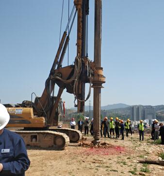 4、4月18日,組織施工單位、監(jiān)理單位、建設(shè)單位、設(shè)計單位、勘察單位進(jìn)行場地第一根長螺旋鉆孔灌注樁和旋挖鉆孔灌注樁試樁的施工。