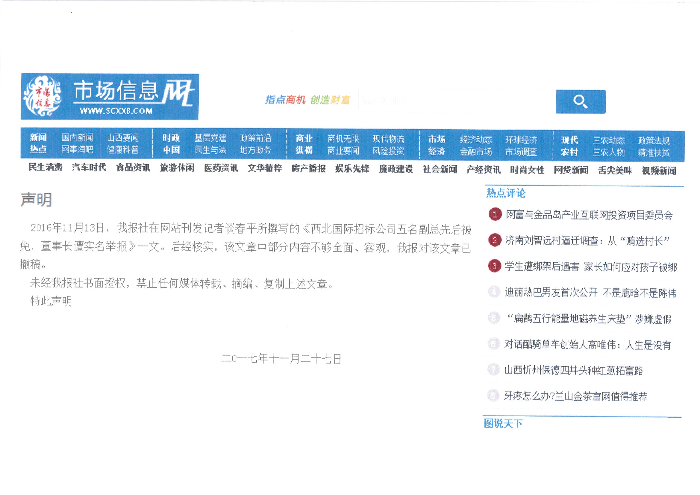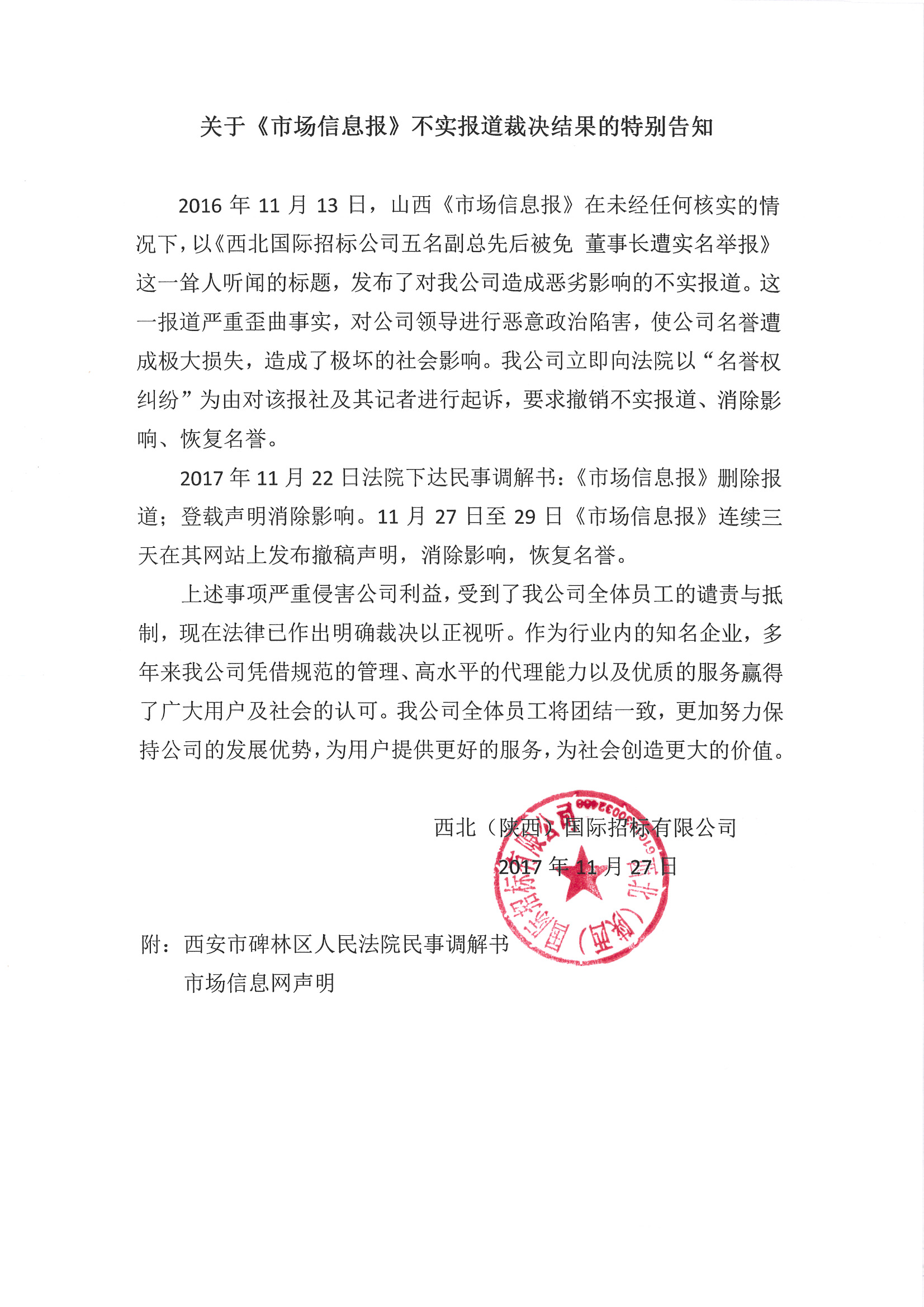 關(guān)于《市場信息報(bào)》不實(shí)報(bào)道裁決結(jié)果的特別告知