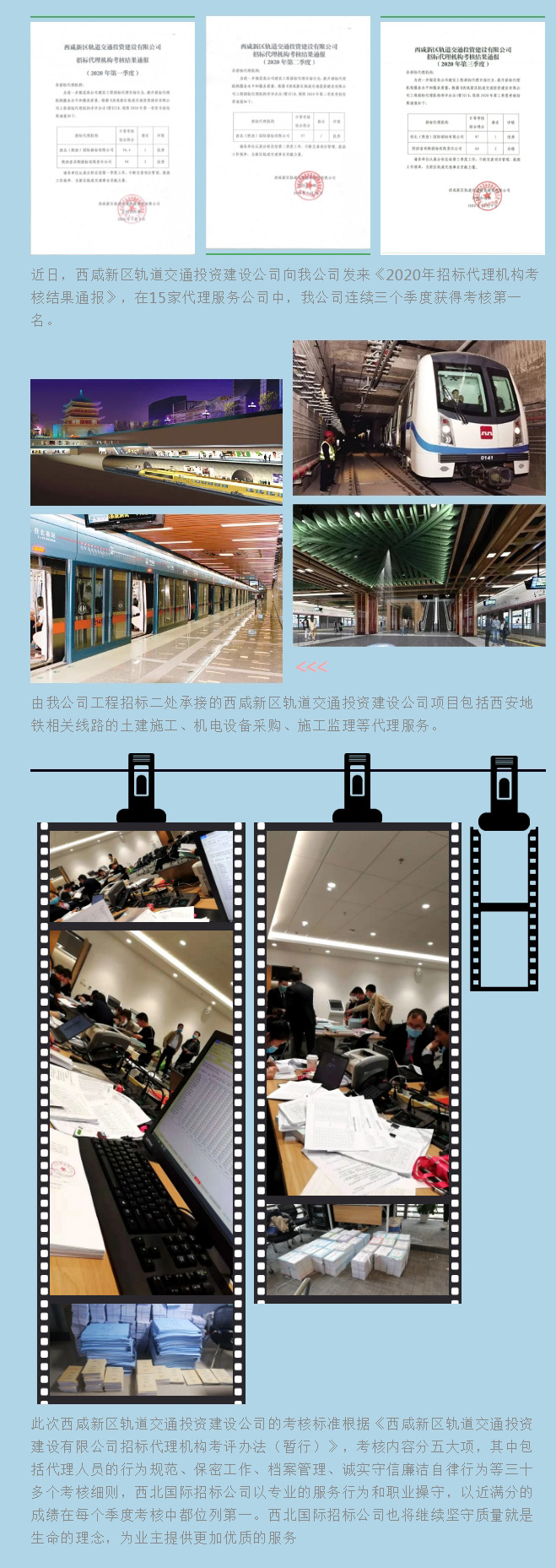 我公司獲西咸新區(qū)軌道交通投資建設公司《招標代理機構考核》連續(xù)三季度第一名
