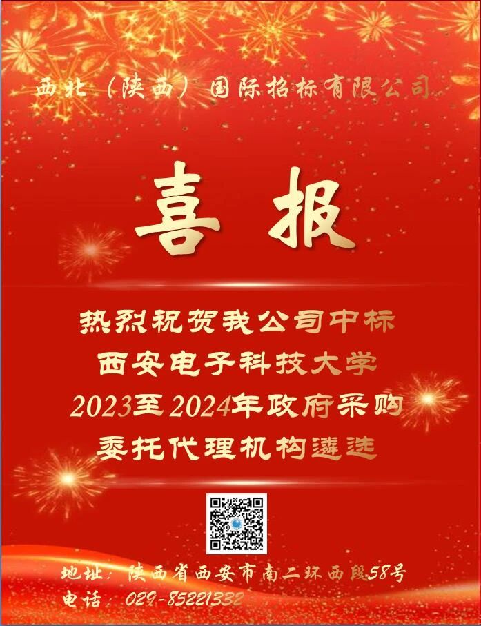 熱烈祝賀我公司中標(biāo)西安電子科技大學(xué)2023至2024年政府采購委托代理機(jī)構(gòu)遴選