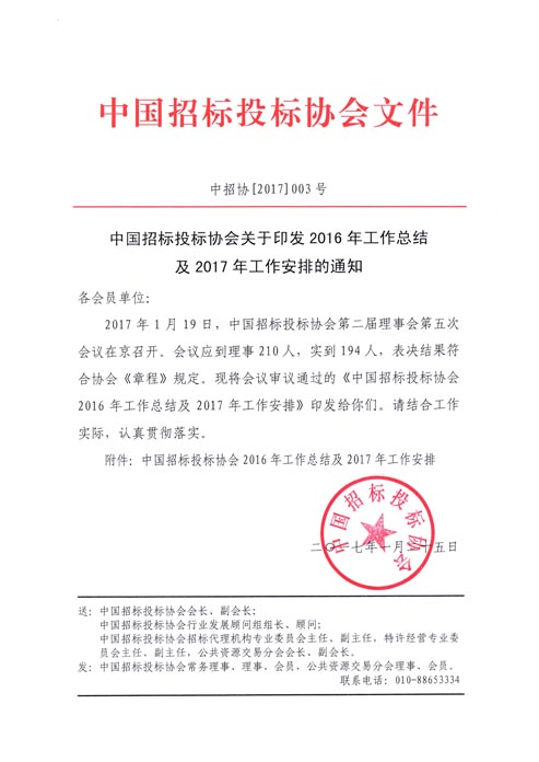 中國招標(biāo)投標(biāo)協(xié)會2016年工作總結(jié)及2017年工作安排