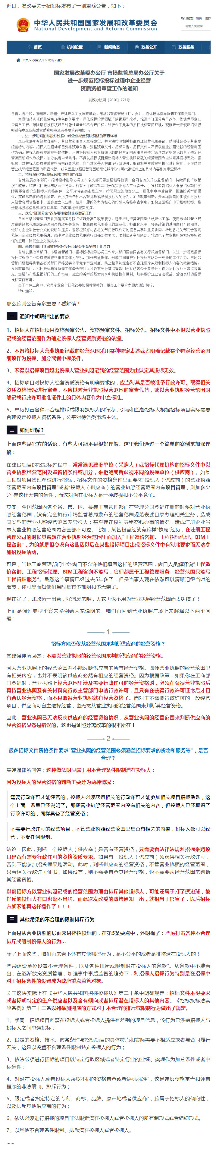 發(fā)改委發(fā)布關(guān)于進(jìn)一步規(guī)范招標(biāo)投標(biāo)過(guò)程中企業(yè)經(jīng)營(yíng)資質(zhì)資格審查工作的通知